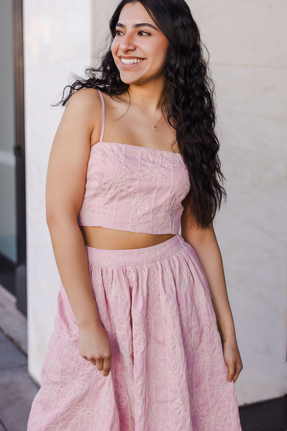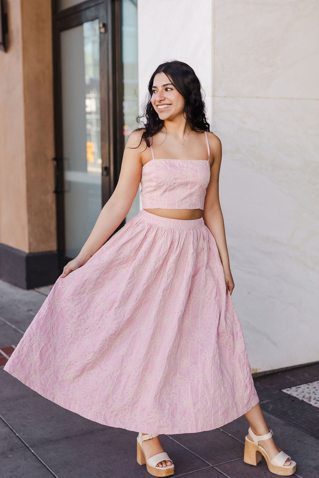 The Quilt Trip Pink Crop Top and Midi Skirt Set