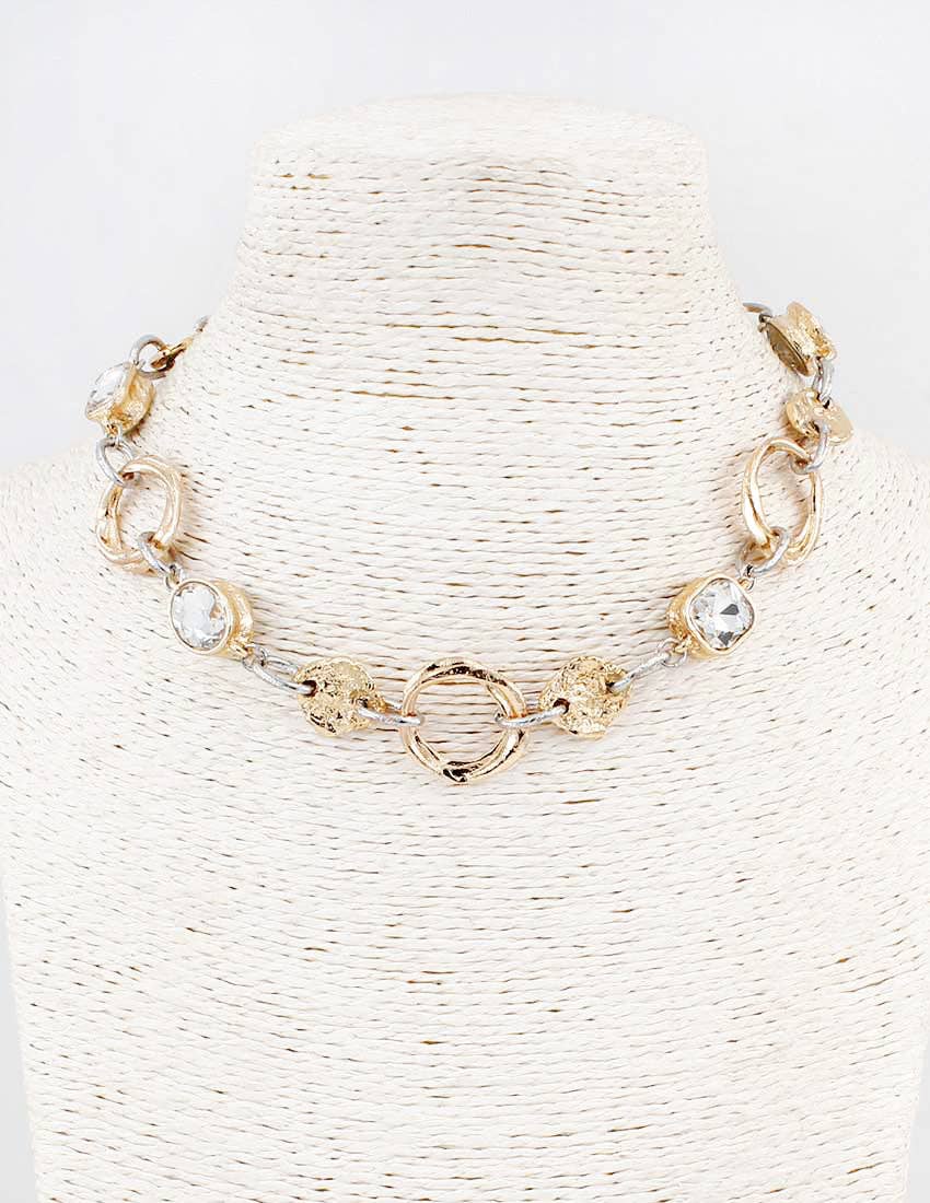 The Two Layered Hammered Square with Clear Crystal Drop 16"-18" Necklace