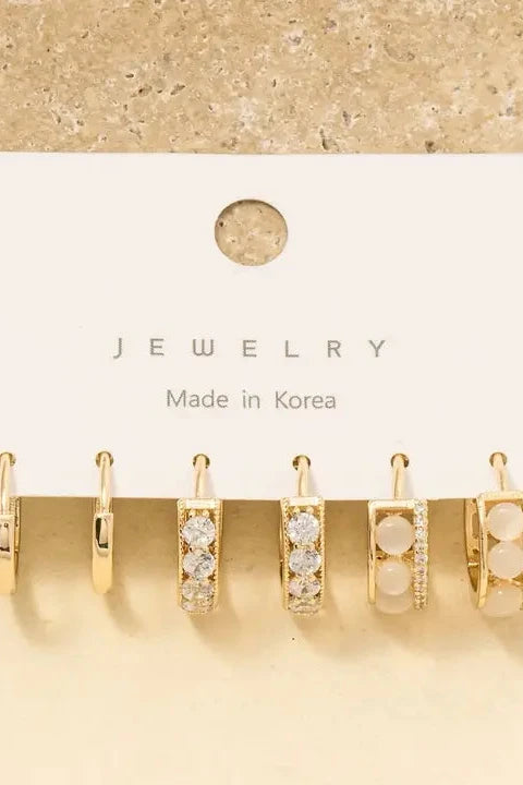 The Mixed Studded 3 Pair Hoop Earrings Set