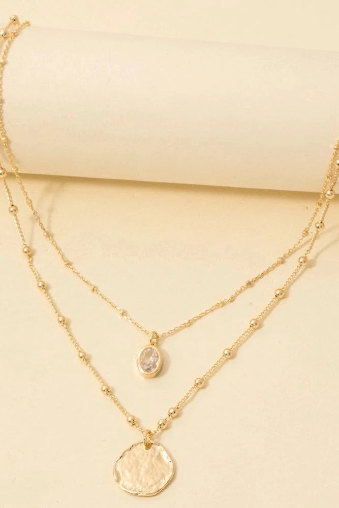 The Coin and Oval Cz Charm Layered Chain Necklace