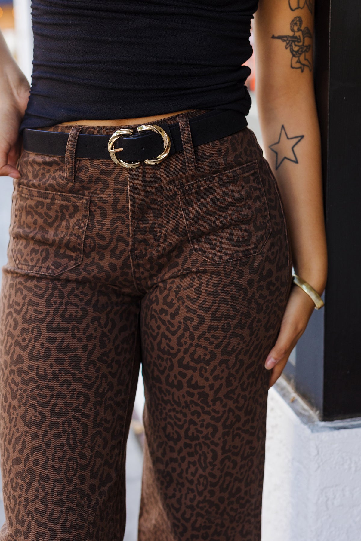 Pair them with a fitted tee or a tucked-in blouse and let the print do the talking—urban chic just got a little wilder.