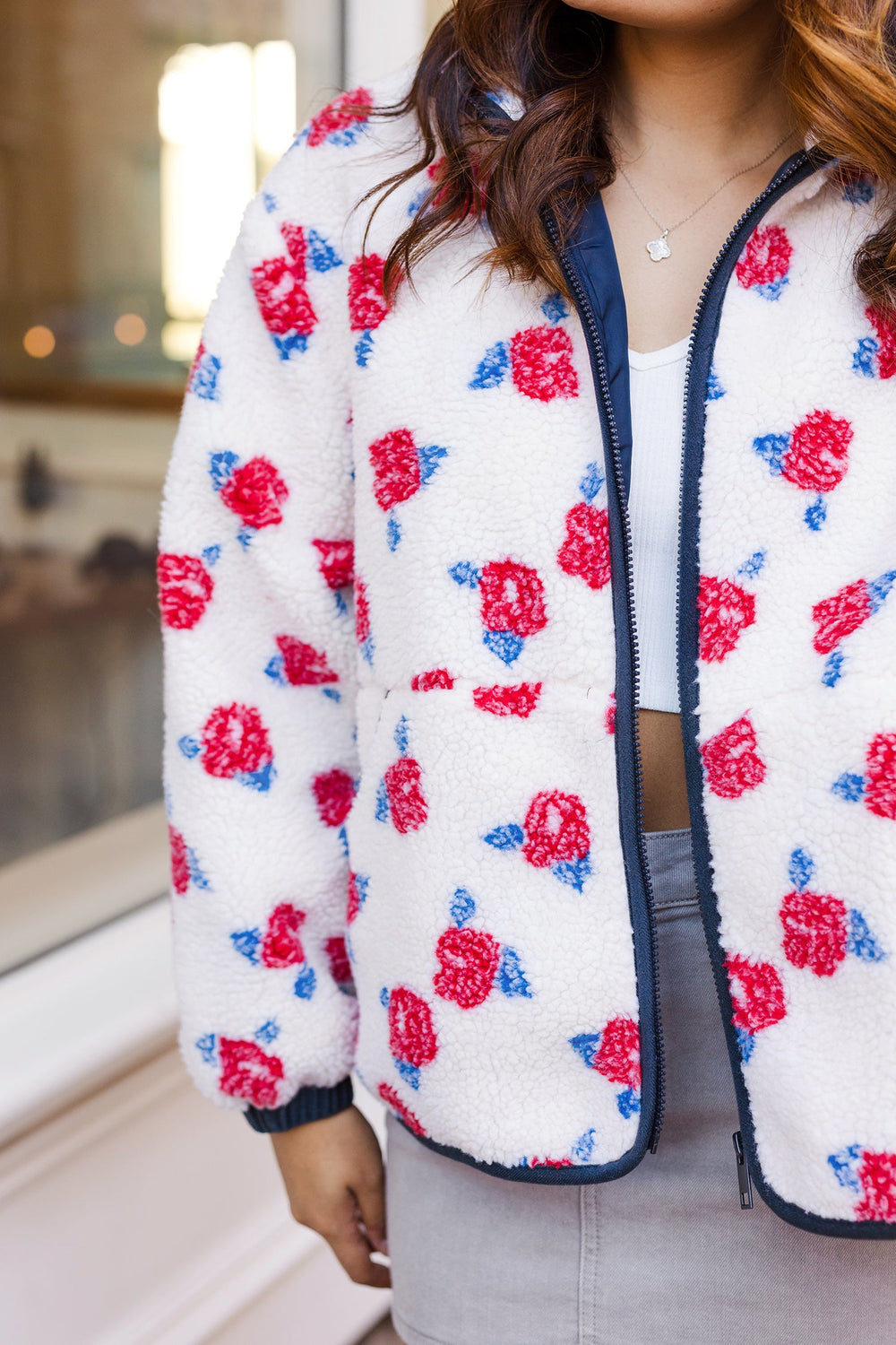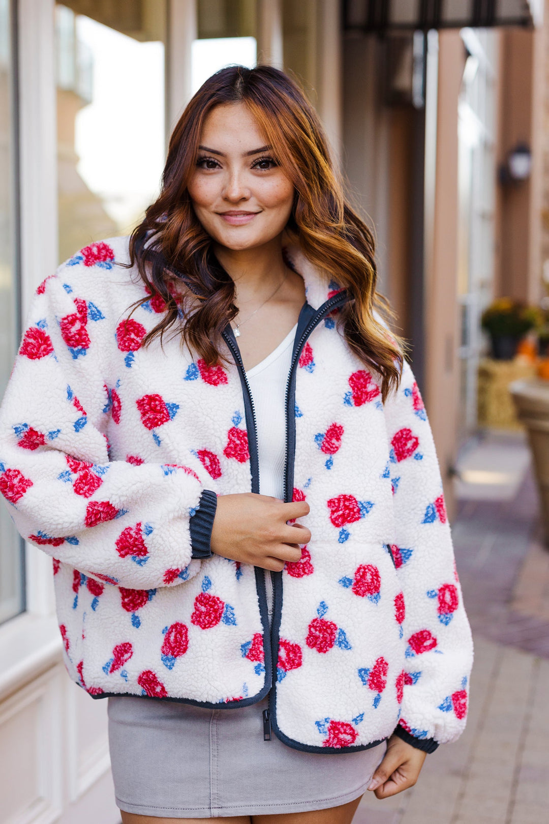 The Rosie Posie Oversized Fleece Zip Up Jacket