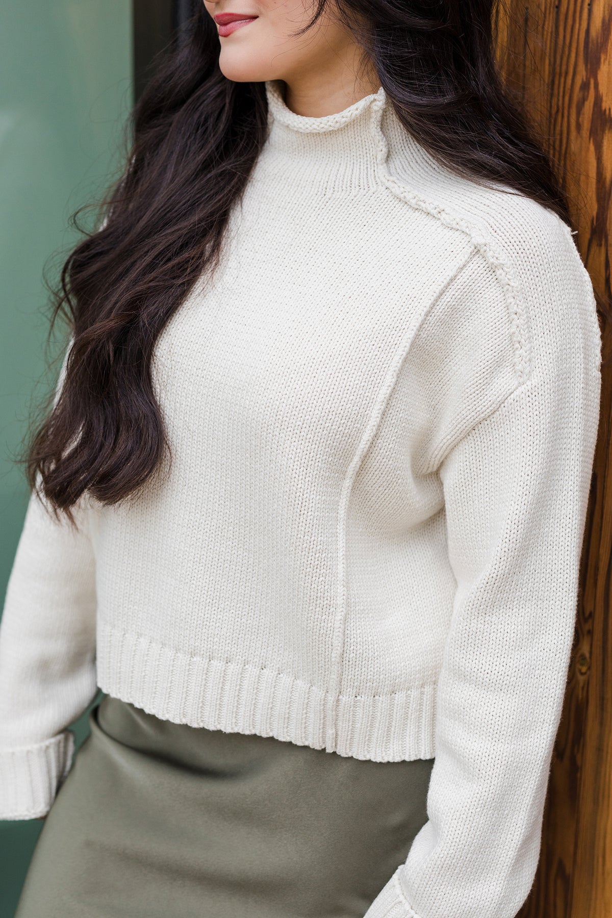 Tags: cream knit sweater, neutral pullover, high neck sweater, cotton acrylic blend, coastal chic style, Shoppe Twelve women’s fashion