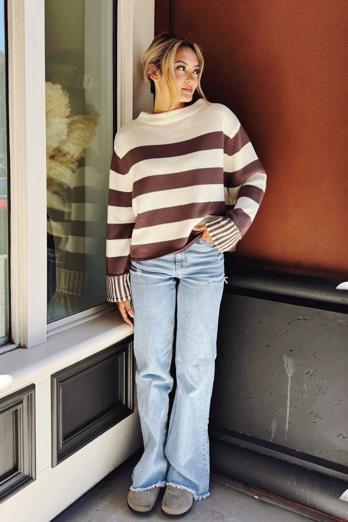 Introducing The Flip Side Striped Sweater - perfect for a playful wardrobe! This sweater features long sleeves, contrasting cuffs with a smaller stripe pattern, and a ribbed, round neckline. Switch up your style with The Flip Side!