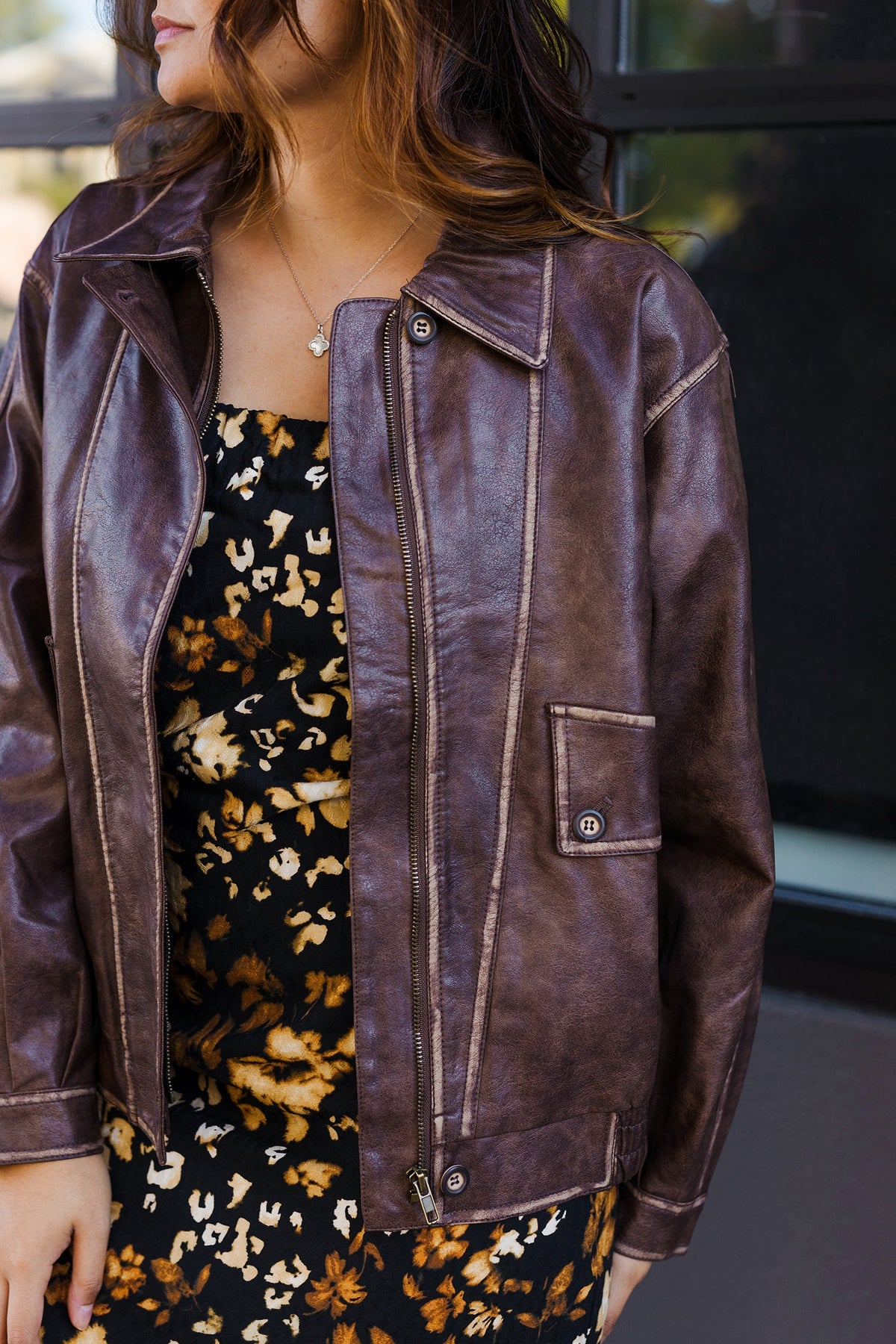 The City Nights Brown Distressed Faux Leather Jacket π€