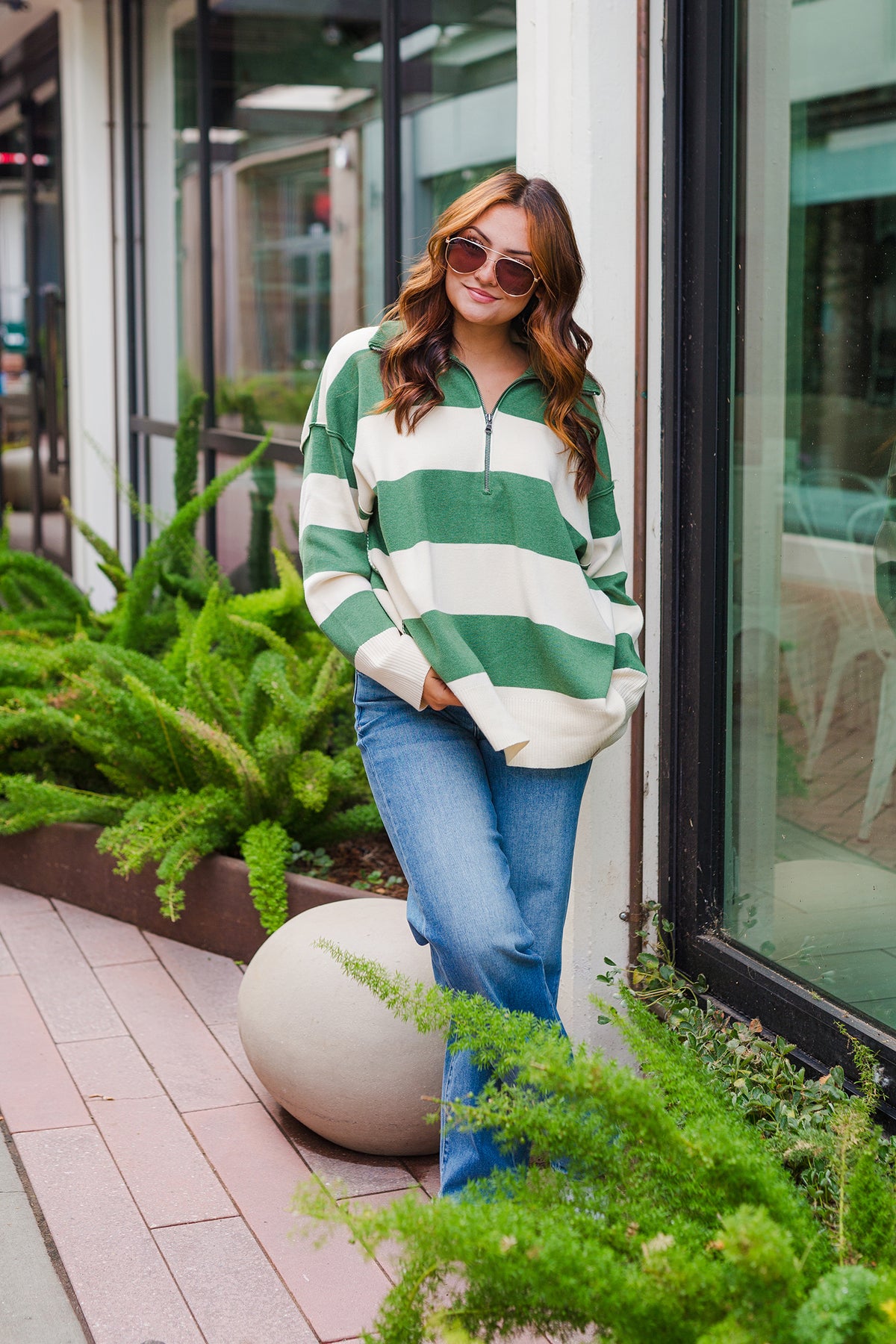 The Game Plan Half Zip Long Sleeve Shirt takes classic rugby stripes and gives them a modern, oversized twist. Designed with a collared half-zip neckline, bold stripe pattern, and drop shoulder fit, it’s the perfect mix of sporty and laid-back.