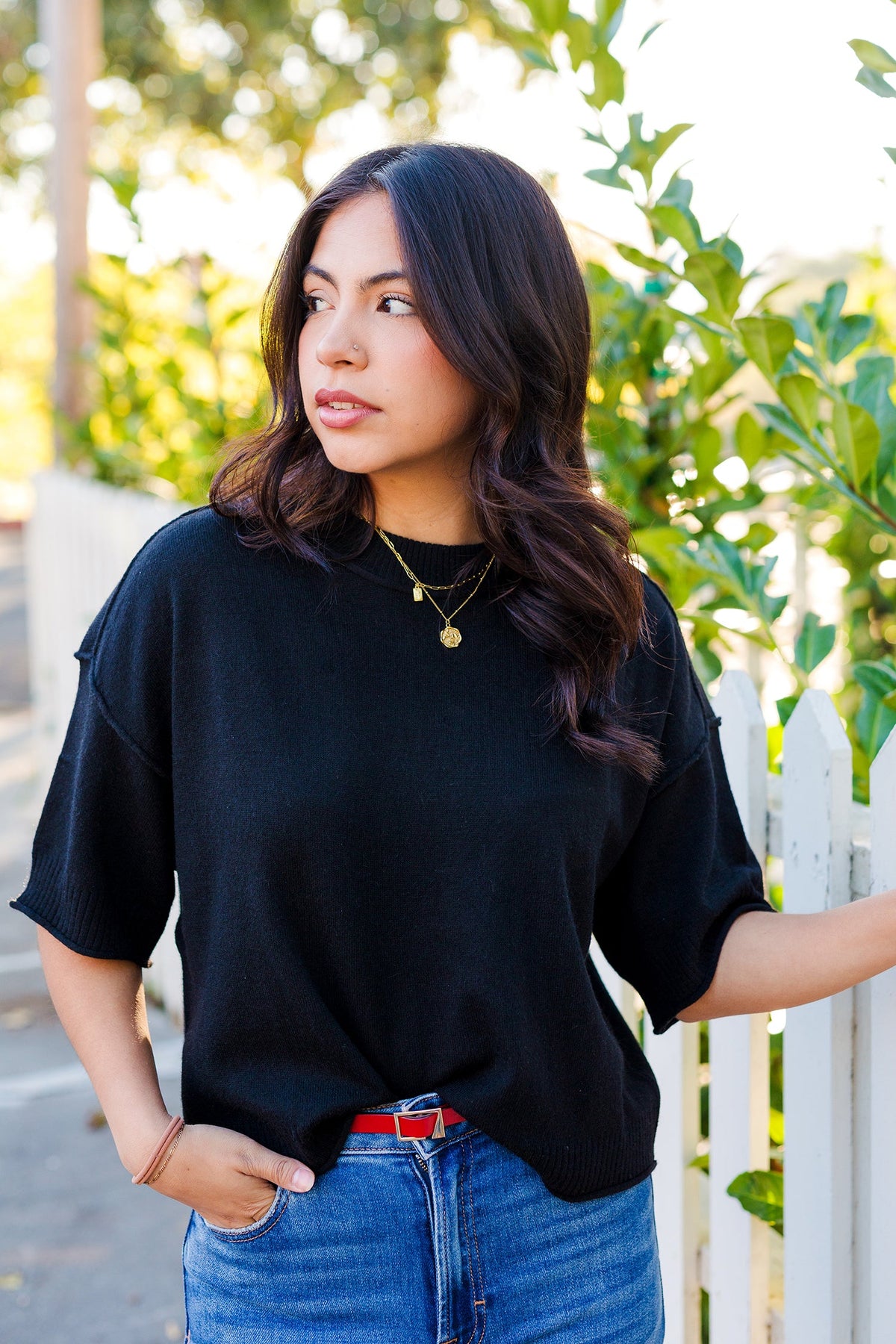 The Seam It All Short Sleeve Knit Top delivers effortless polish with a modern twist. Designed with exposed seams and ribbed details, this knit top keeps things casual but far from basic.